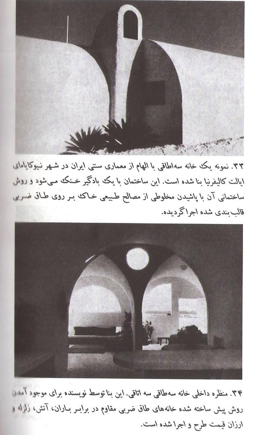او با الهام از مولوی، آب و باد و خاک و آتش را زنده میدانست و وقتی در سفرهای طولانیاش در کویر، متوجه سرپا ماندن ساختمانهای گنبدی پس از زلزله شد، بخشی از ایده خانههای خشتی گنبدیاش را