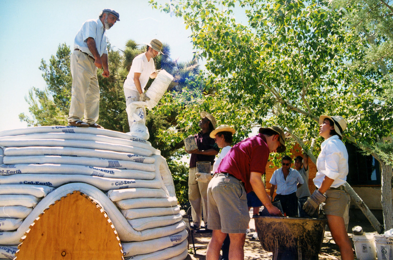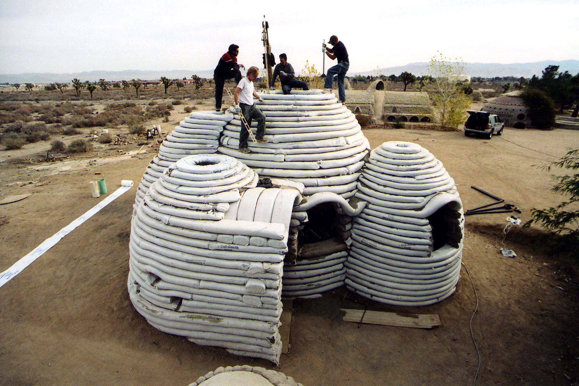 با پُرکردن کیسههای کمعرض و استوانهای از خاک و دهدرصد سیمان و روی هم گذاشتن این کیسهها و محکم کردنشان با سیم خاردار، خانه به جای روش زمانگیر استفاده از آجر یا بلوکهای واحد و چسباندن آنها با ملاط، بهسرعت با کیسههای طولانی چیدهشده روی هم، ساخته میشود.