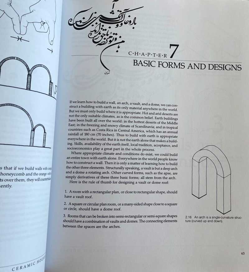 شکل داد و وقتی در پس زلزلهای قویتر متوجه شد که حتی آن خانههای گنبدی خشتوگلی هم دوام نیاوردهاند و فقط کورهٔ کاشیپزی روستا سالم و سرپا مانده، ایده پُختن همین خانههای خشت وگلی را ابداع کرد. خانههای گلی با پاشیدن لعاب و بعد برافروختن آتش، مثل سرامیک سخت و در برابر آب و آتش و باد، نفوذناپذیر میشدند؛ اسم این روش را «گِلتافتن» گذاشت و از همان زمان در کلاسها و دورههای آموزشیاش این بیت شعر مولوی را تکرار کرد و تکرار کرد: